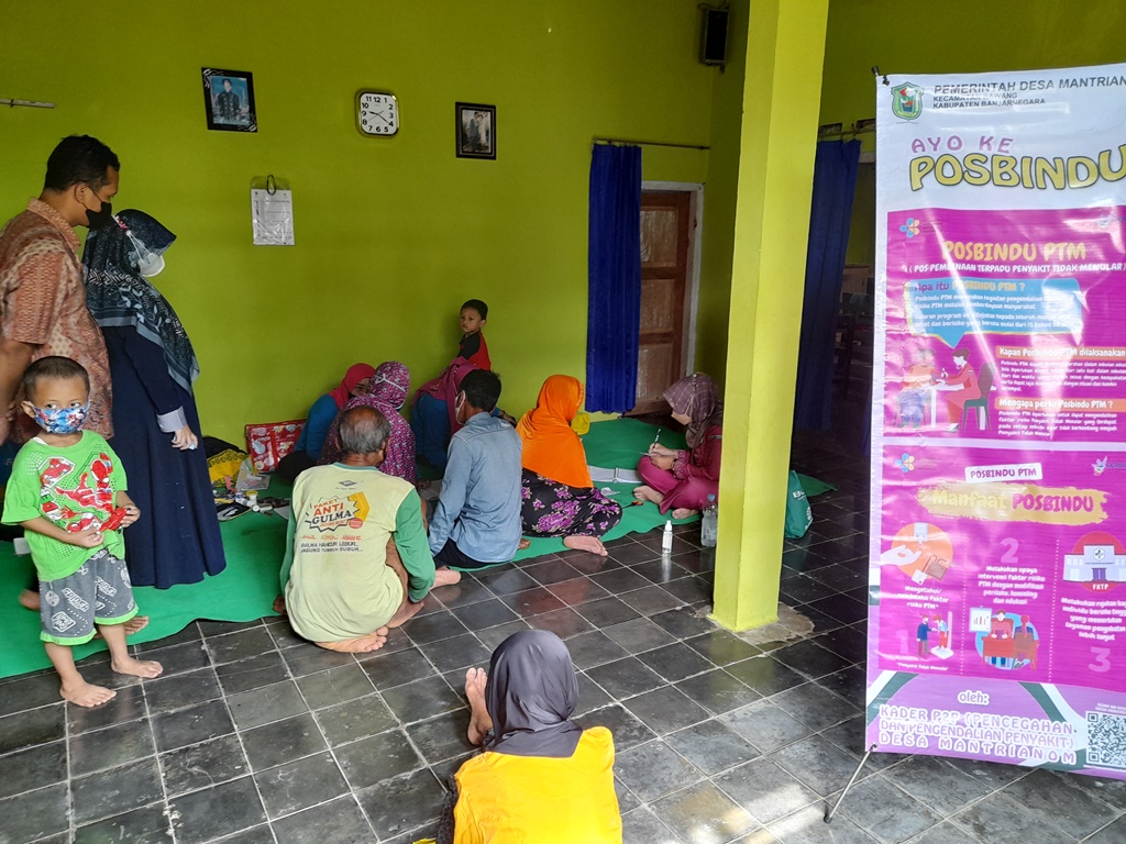 Posbindu atau Pos Binaan Terpadu adalah suatu kegiatan yang bertujuan untuk memantau atau memonitoring dan deteksi dini dari faktor resiko penyakit tidak menular, seperti jantung, hipertensi, diabetes dll. Kegiatan yang dilaksanakan mengarah pada masyarakat dengan usia produktif mulai dari 15 sampai dengan 59 tahun. Peserta hadir yang didominasi oleh ibu-ibu rumah tangga dan lansia cukup antusias mengikuti kegiatan tersebut.