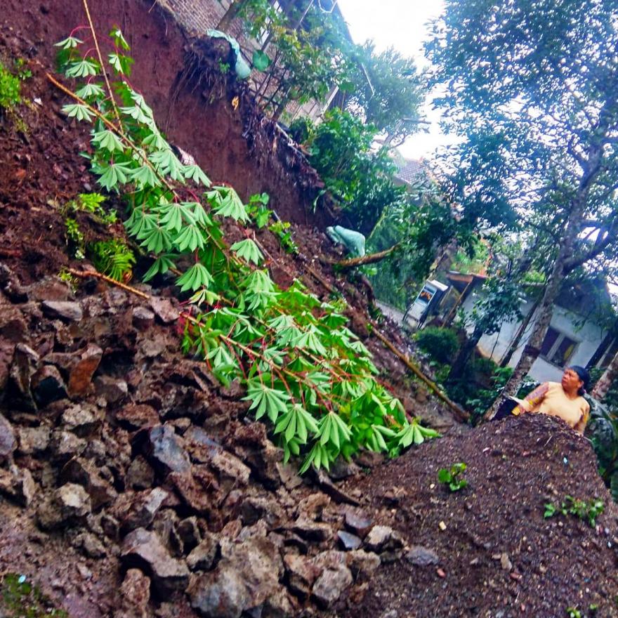 Hujan deras dapat menyebabkan longsor karena air yang jatuh ke tanah bisa menggerus dan melarutkan material tanah. Jika terjadi dalam jumlah yang cukup besar, air tersebut dapat membebani struktur tanah dan menyebabkan lereng atau bukit menjadi tidak stabil. Ketika beban air menjadi terlalu besar, maka tanah atau batuan yang longsor bisa mengalir dengan kecepatan yang tinggi dan menghancurkan apa saja yang berada di jalannya, termasuk rumah, jalan, atau infrastruktur lainnya seperti yang terjadi di beberapa wilayah Desa Mantrianom pada tanggal 4 Januari 2023 kemarin.