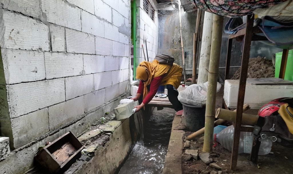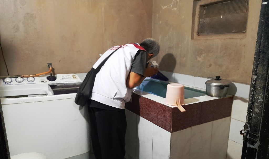 Kegiatan Pemberantasan Sarang Nyamuk (PSN) dilaksanakan di komplek Pondok Pesantren Tanbihul Ghofiliin oleh Kader Jumantik Desa Mantrianom dan didampingi oleh petugas kesehatan dari Puskesmas Bawang I.